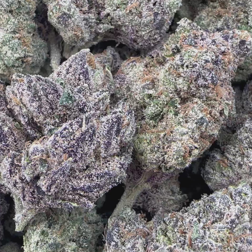 Dense, frosty purple buds with bright orange hairs make Granddaddy Purple visually striking. It’s a go-to strain for those seeking deep relaxation, relief from physical tension, insomnia or appetite loss.